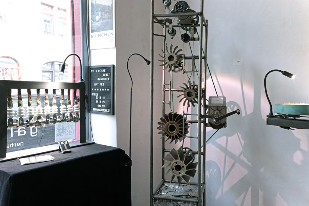 Willi Reiche widmet sich seit 1998 ausschließlich der kinetischen Kunst. Insbesondere bei seinen Werken neueren Datums verfolgt er mit der Verwendung gleicher Bestandteile häufig das Prinzip serieller Anordnungen; durch die Wiederholung und Reihung identischer oder ähnlicher Formen entsteht jedoch keine eintönige Uniformität, sondern Reiche konstruiert Gefüge, die zwar einem gewissen Ordnungsmuster unterliegen, eine Konstante widerspiegeln, zugleich aber Variationen zulassen; als wandlungsfähiges Objekt und tänzelndes Schattenspiel.